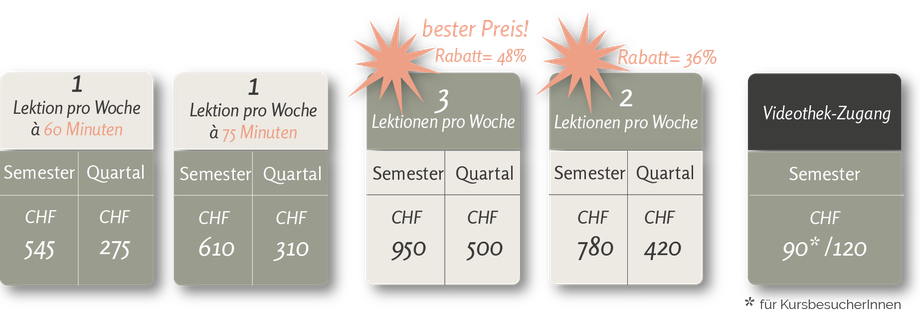 Bei 2 oder 3 Lektionen pro Woche können die Lektionen frei gewählt werden.